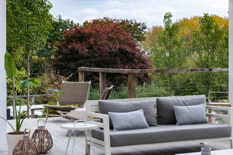 Finished with carefully chosen outdoor furniture and lifestyle accessories, the garden now feels contemporary, welcoming, and fully integrated with the house, a confident landscape that meets the architecture on equal terms.