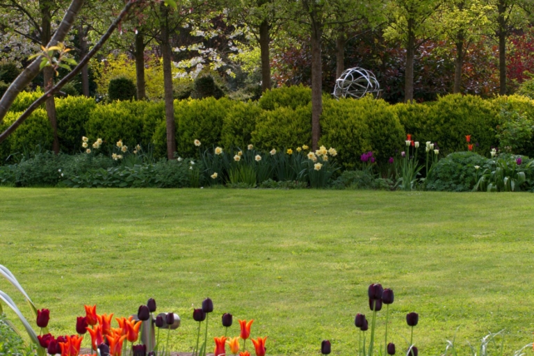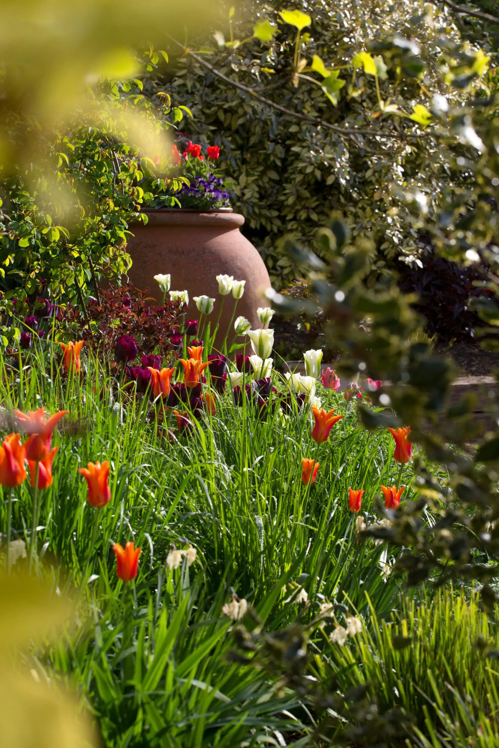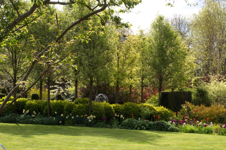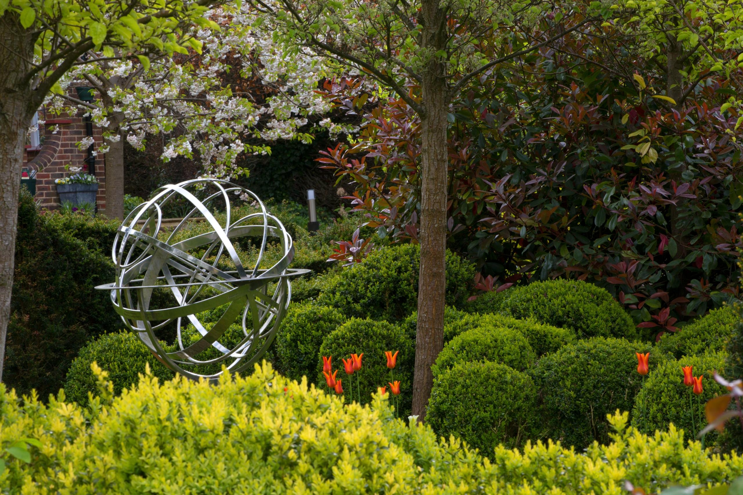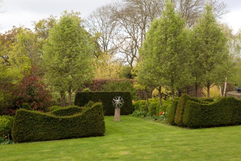 Our design approach was rooted in creating a garden that felt appropriate to the period of the house, while improving structure, flow, and visual clarity. We introduced a series of vistas set perpendicular to the house, forming garden avenues that draw the eye outward into the landscape. Each axis terminates in a carefully considered focal point, framed by trees, cloud-pruned hedging, and layered planting to create depth and rhythm.